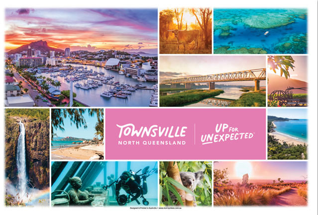 A microfibre Tea Towel with scenic photos of Townsville region.